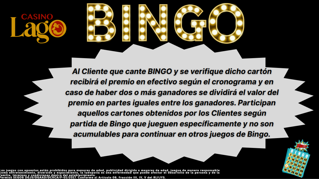 Al Cliente que cante BINGO en dichas partidas tendrá la posibilidad de elegir un premio sorpresa, los detalles de los premios se guardarán en cuatro sobres cerrados para que el cliente pueda elegir al azar el sobre que quiera con créditos promocionales. En caso de haber dos o más ganadores se dividirá el valor del premio en partes iguales entre los ganadores. Participan aquellos cartones obtenidos por los Clientes según partida de Bingo que jueguen específicamente, no son acumulables para continuar en otros juegos de Bingo.